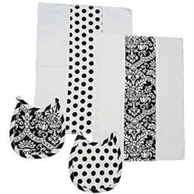 Tadpoles? 4 piece Damask Layette Set includes 2 burp cloths and 2 bibs in black and white. Combine with the Damask crib set and Moses Basket set for the perfect baby shower gift!
